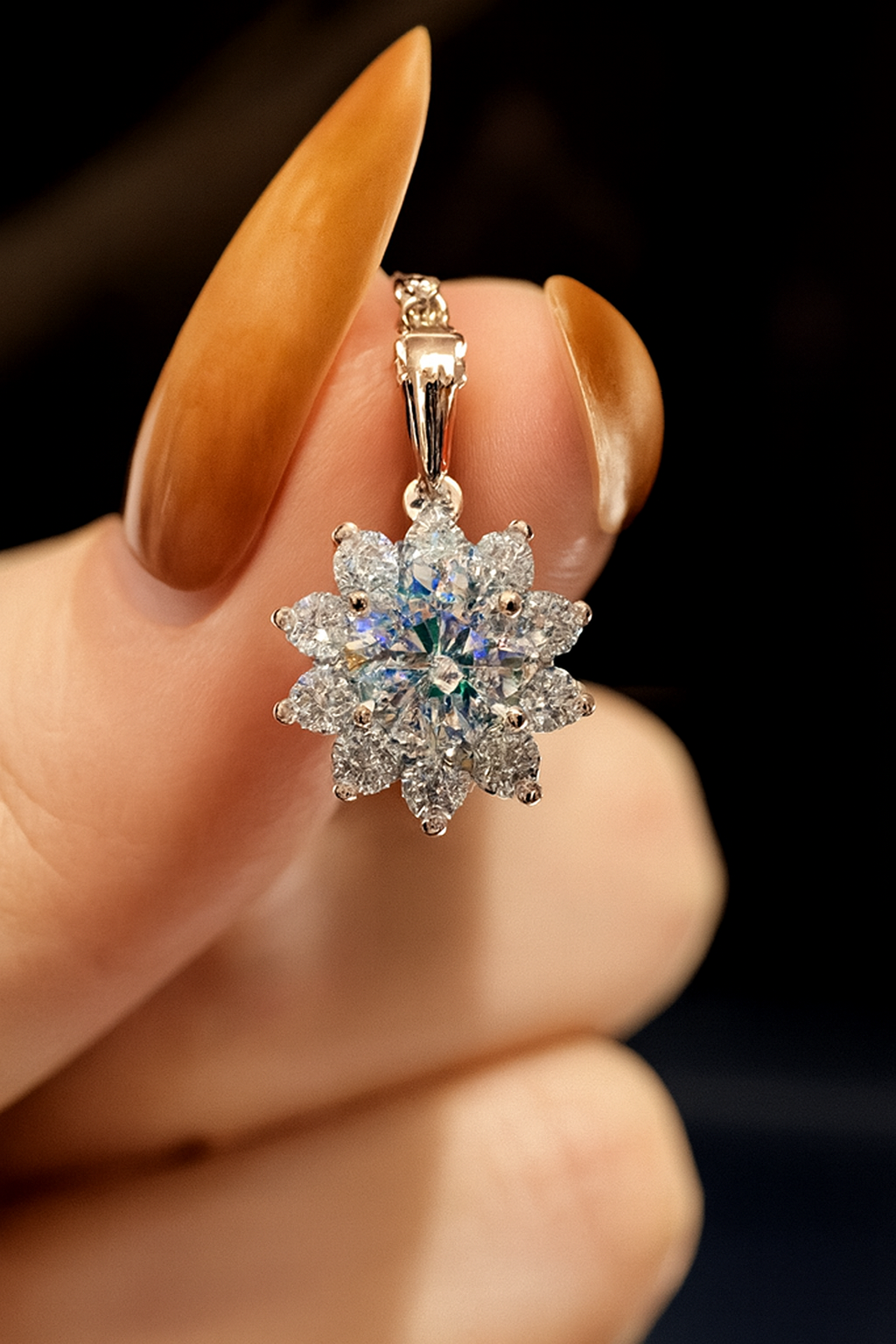 1 Carat Snowflake Moissanite Pendant Necklace 925 Sterling Silver