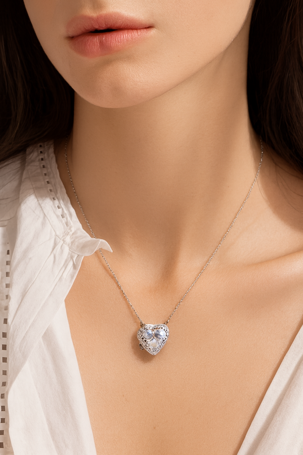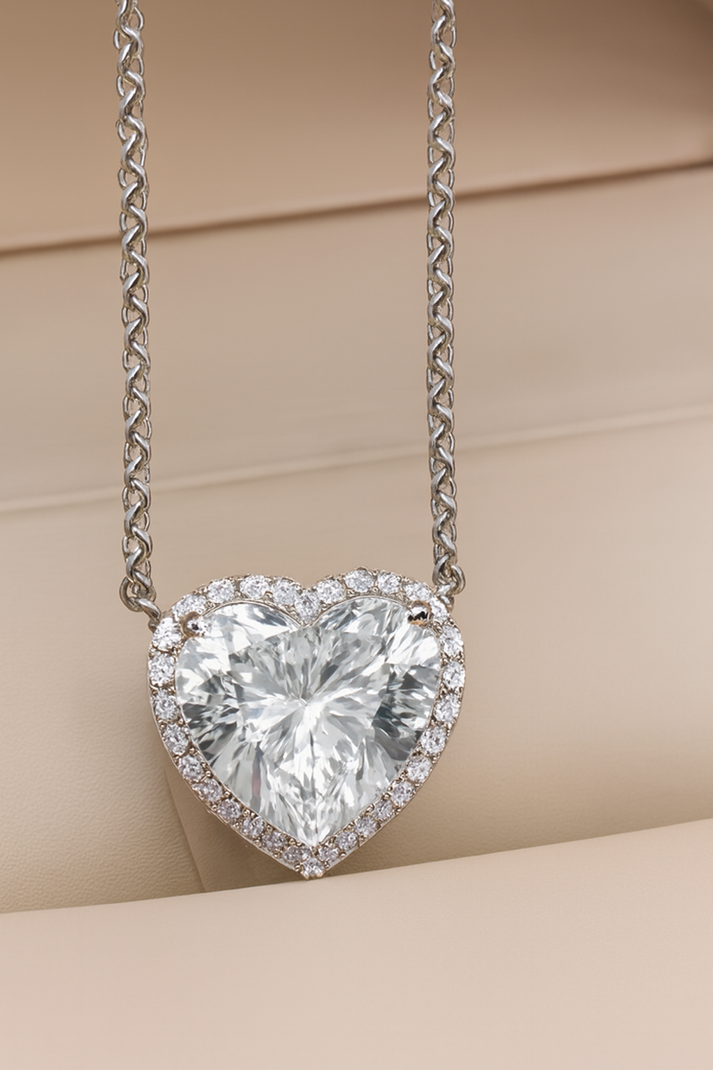 4 Carats Heart Cut Moissanite 925 Silver Pendant Necklace