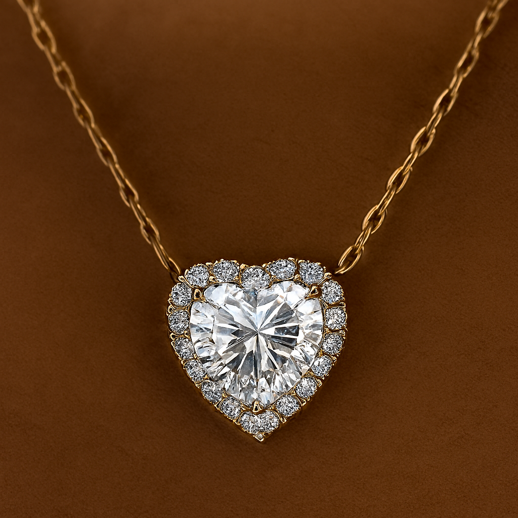 4 Carats Heart Shape Moissanite Pendant Necklace 925 Sterling Silver