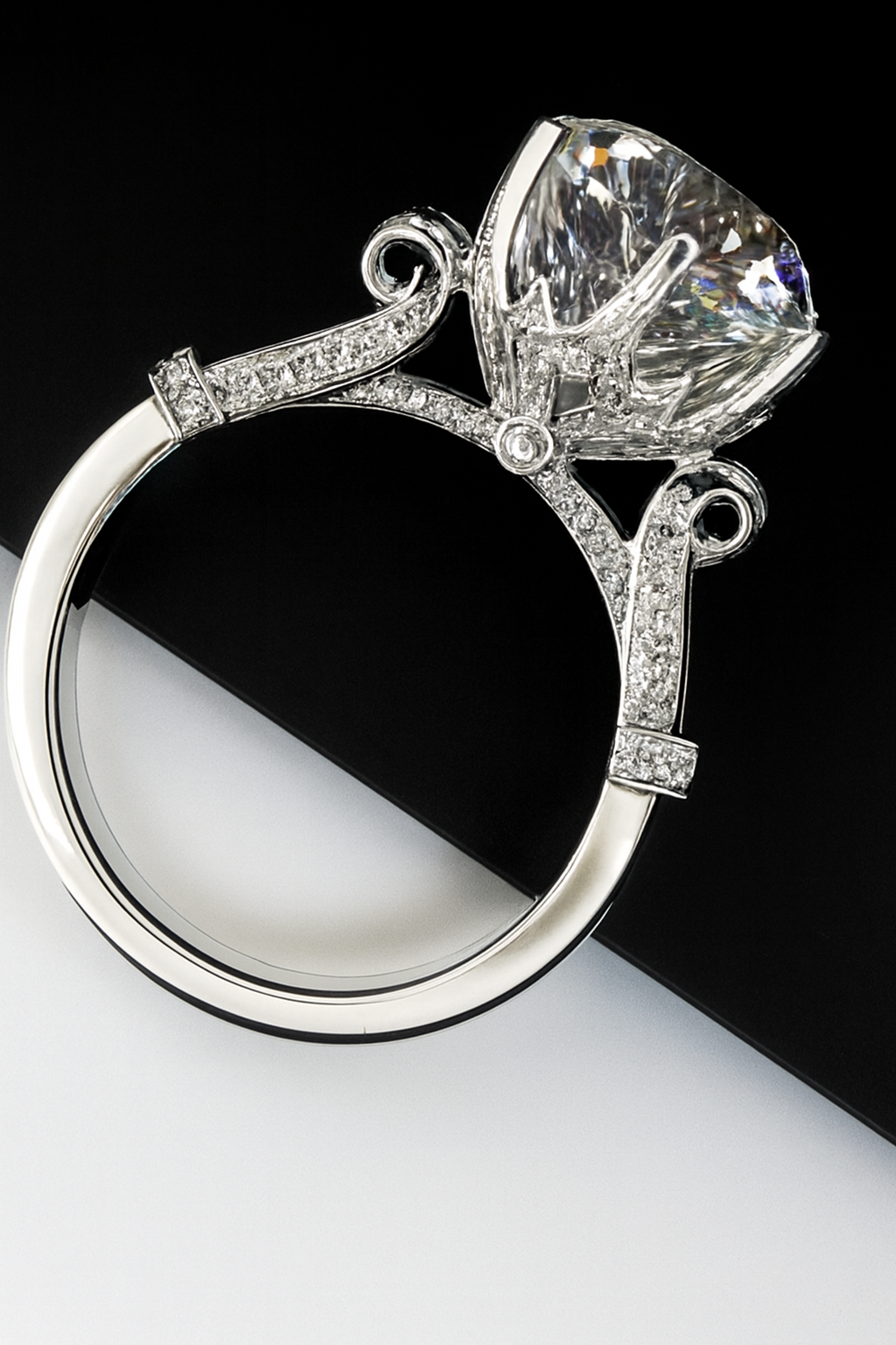 18K White Gold Ring Inlay Moissanite 5 Carats In All