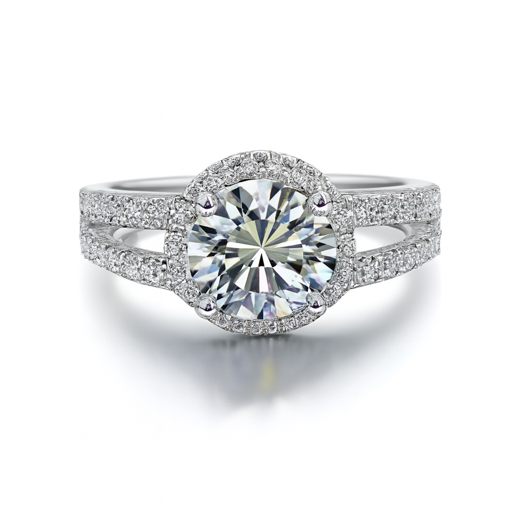 Solid Platinum PT950 Moissanite Ring 2 Carats